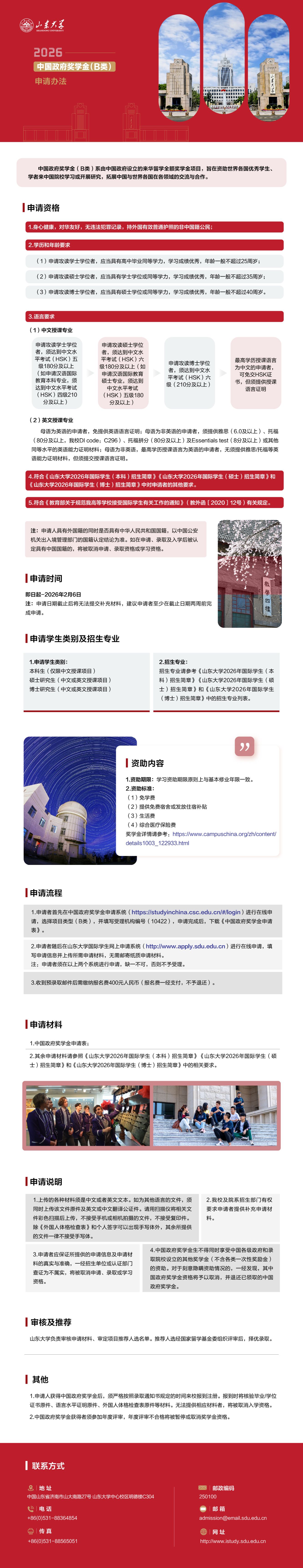 山东大学2026年中国政府奖学金(B类)申请办法