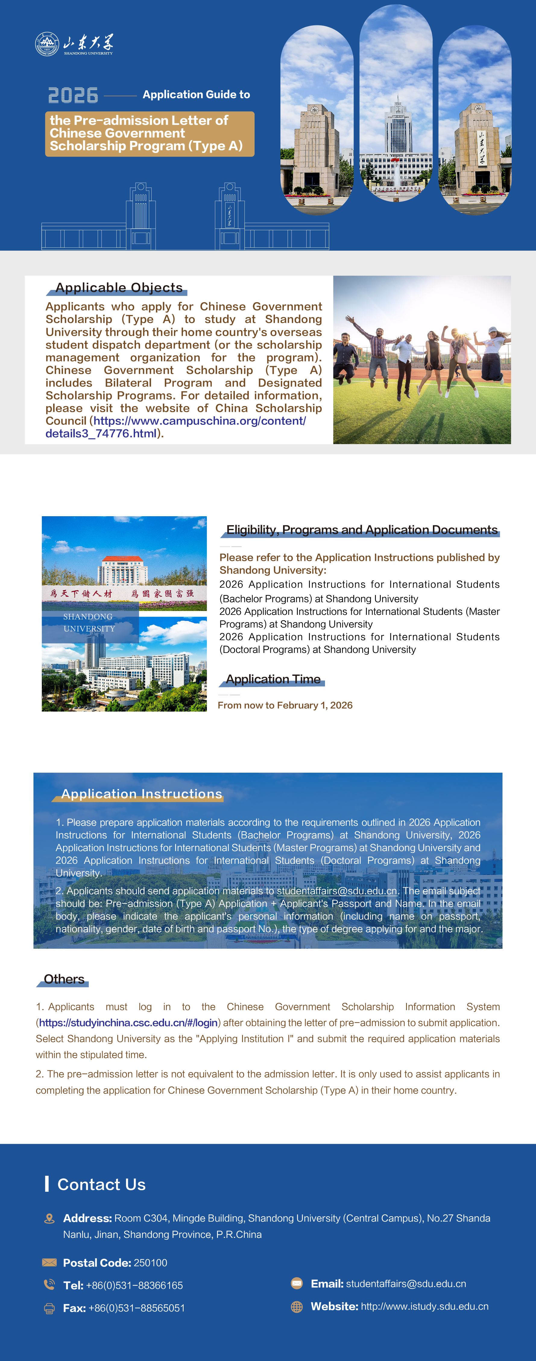 2026 Application Guide to the Pre-admission Letter of Chinese Government Scholarship Program (Type A) at Shandong University