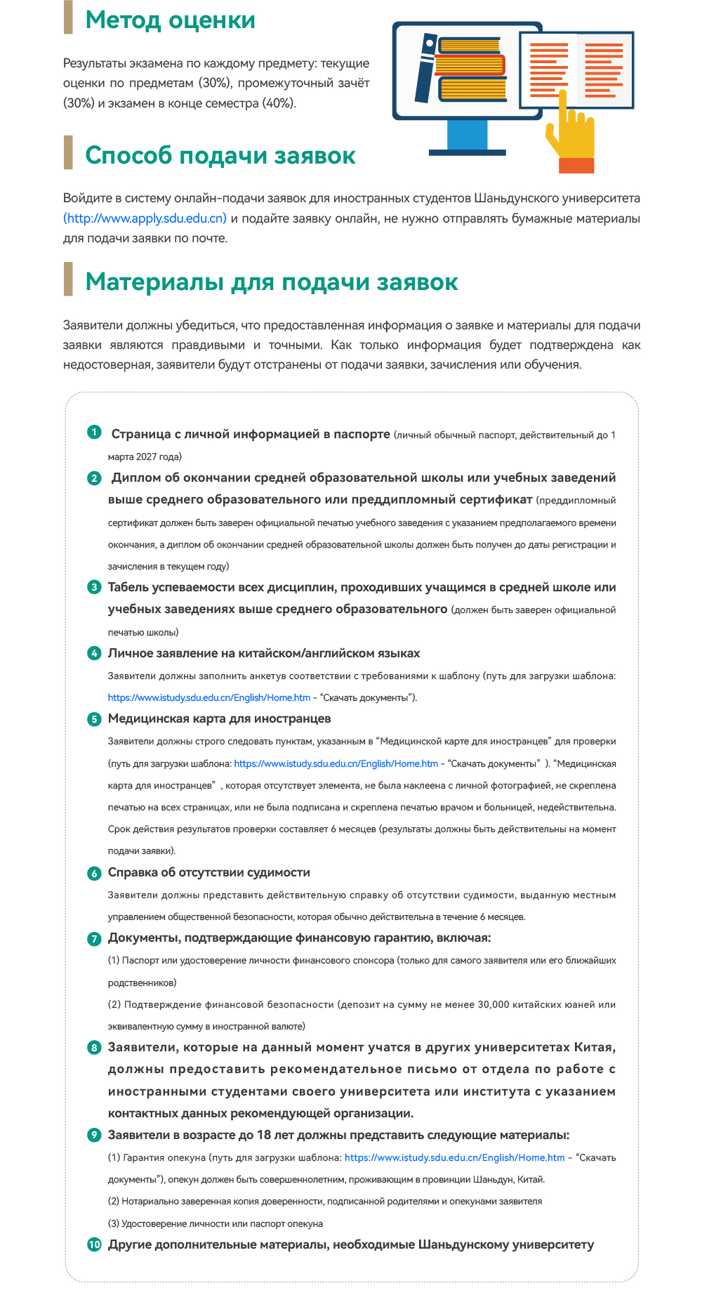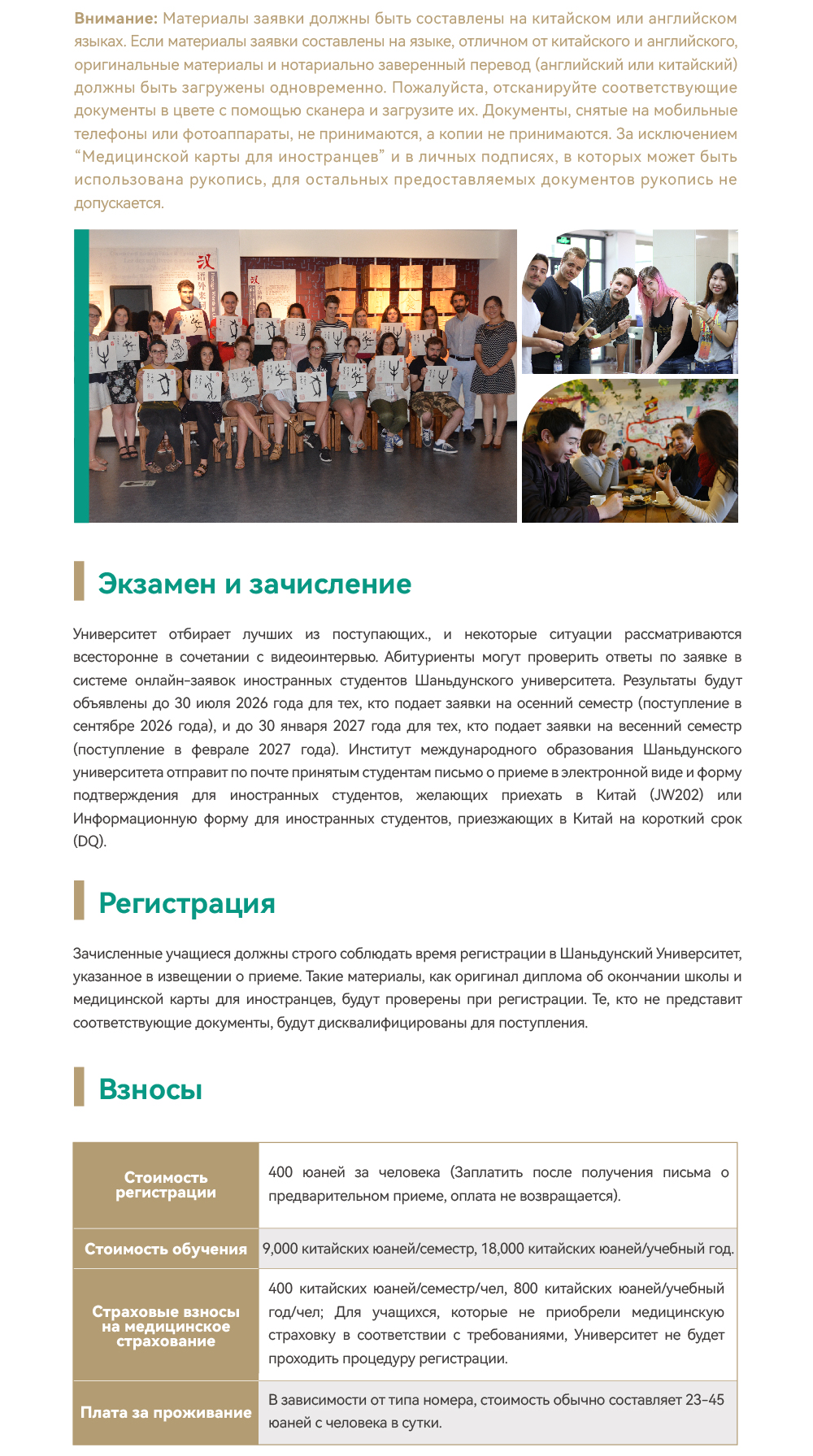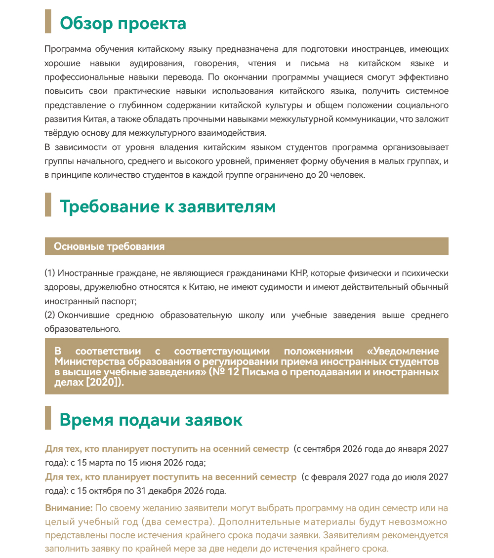 Правила приема иностранных студентов (программа обучения китайскому языку) Шаньдунского Университета на 2026 год
