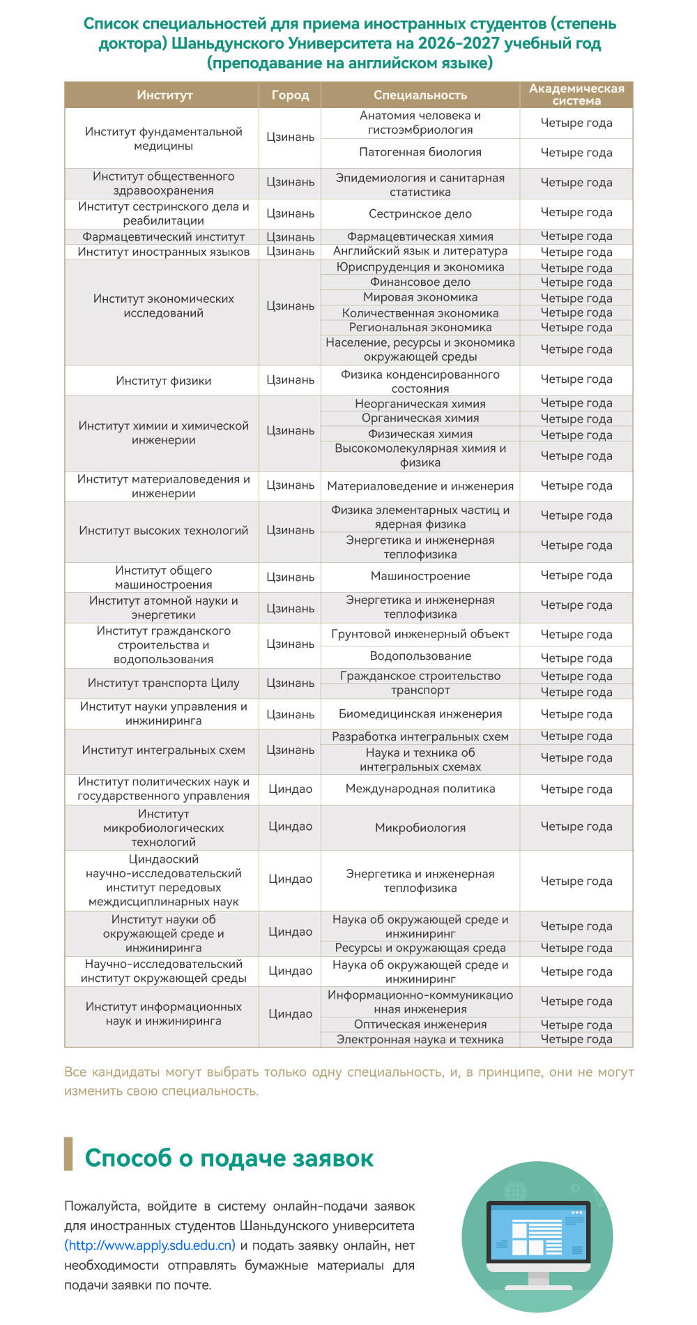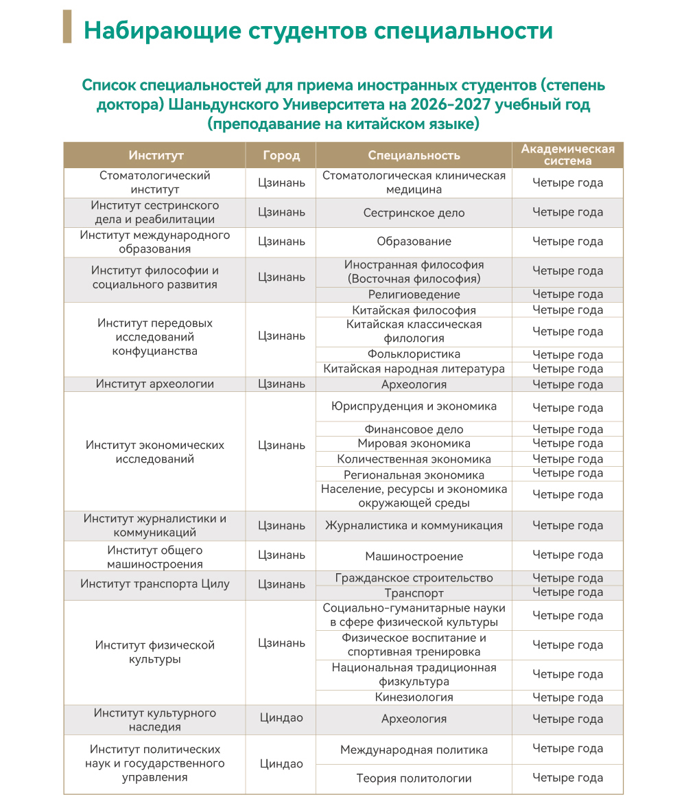 Правила приема иностранных студентов (степень доктора) Шаньдунского Университета на 2026 год