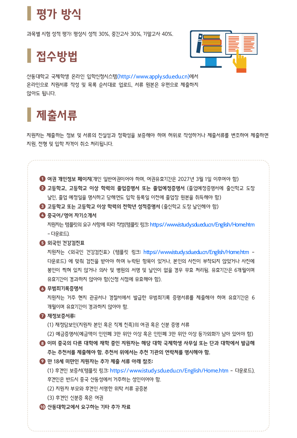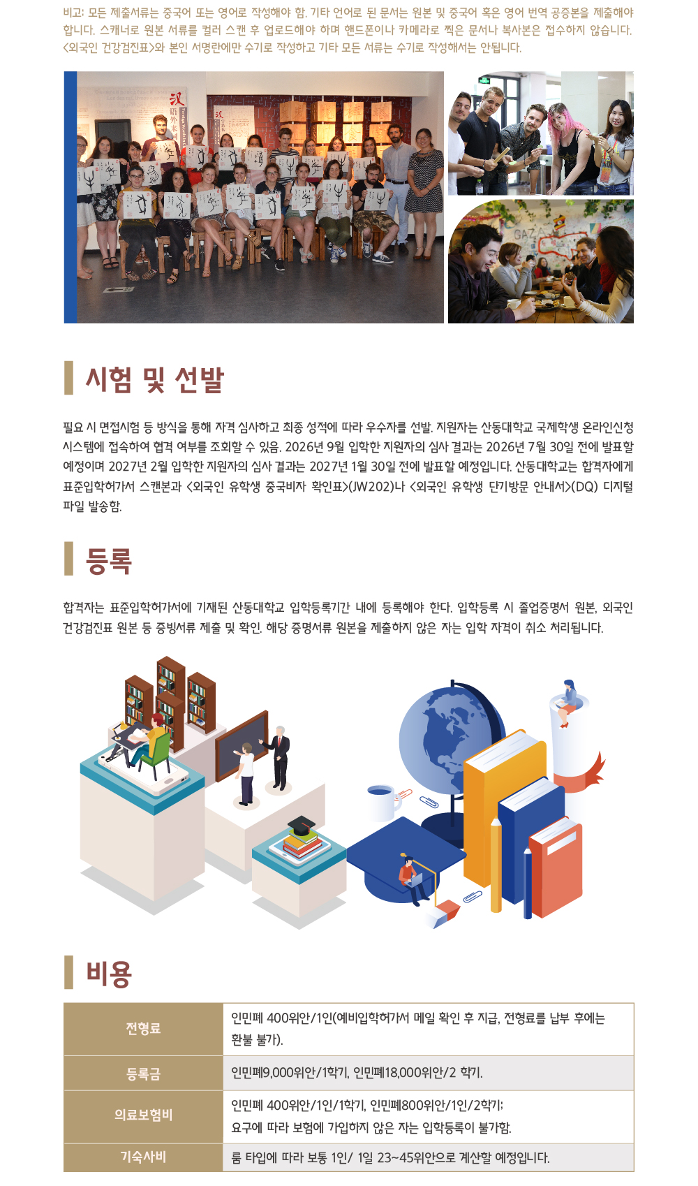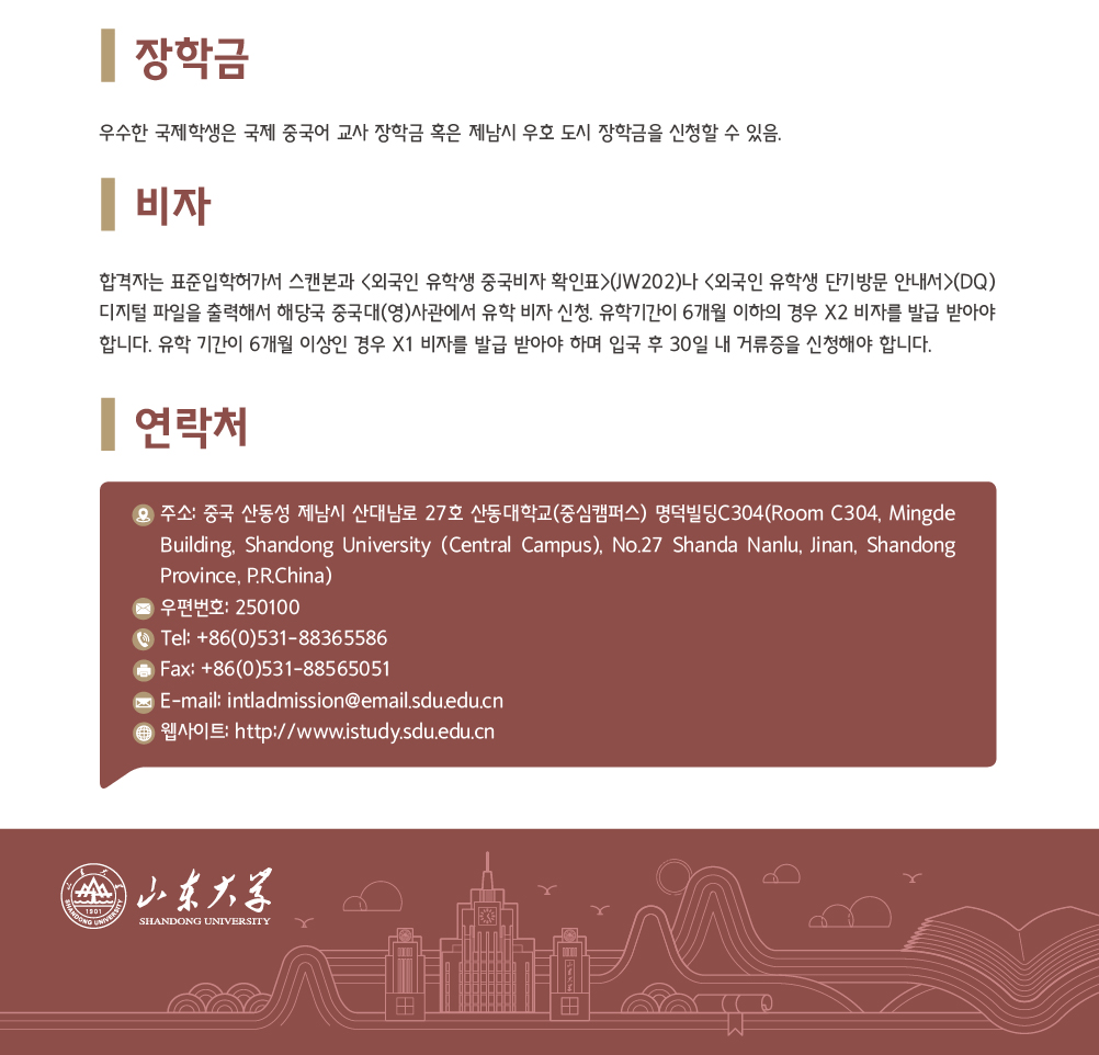 2026년 산동대학교 국제학생(중국어 연수 프로그램) 모집요강