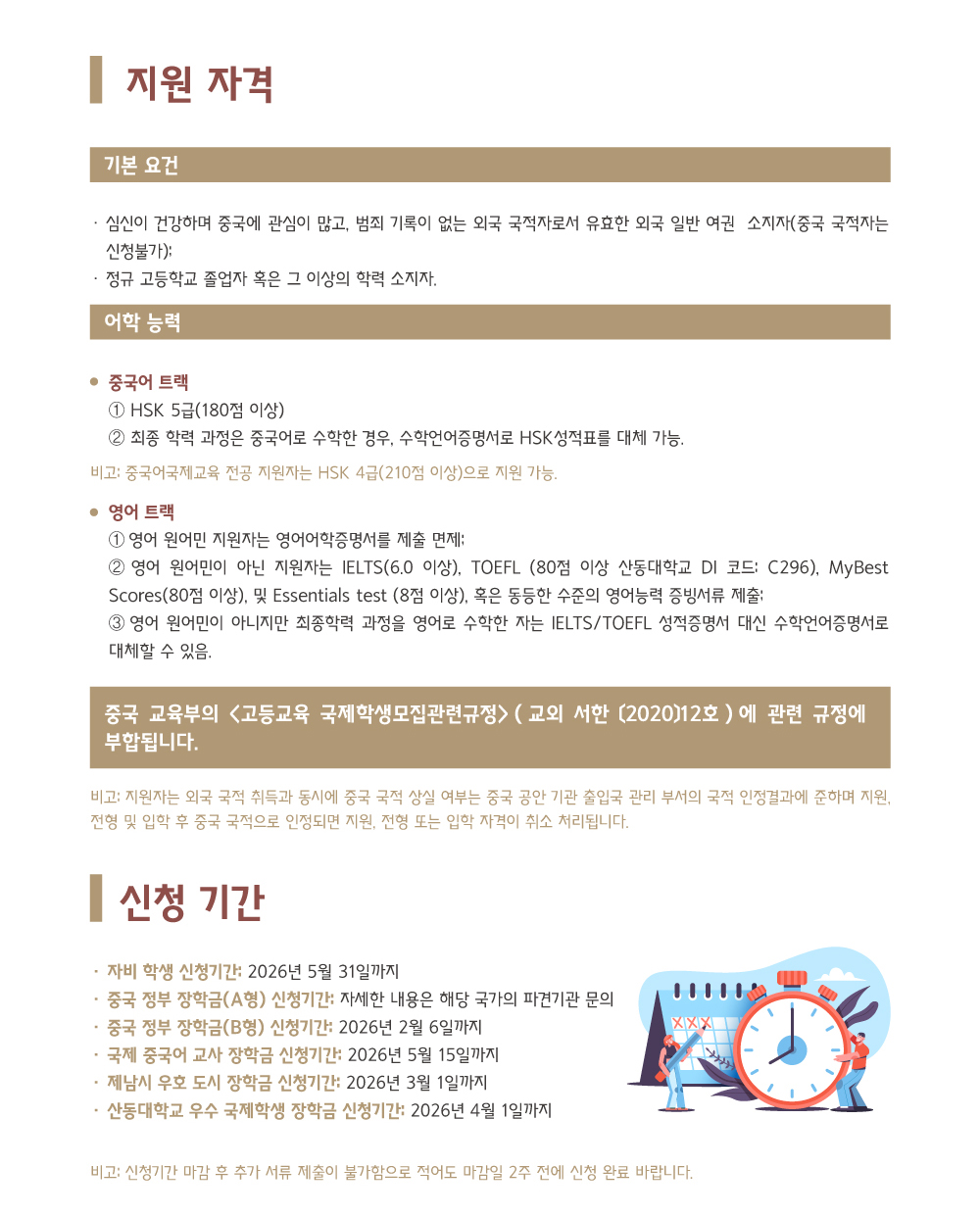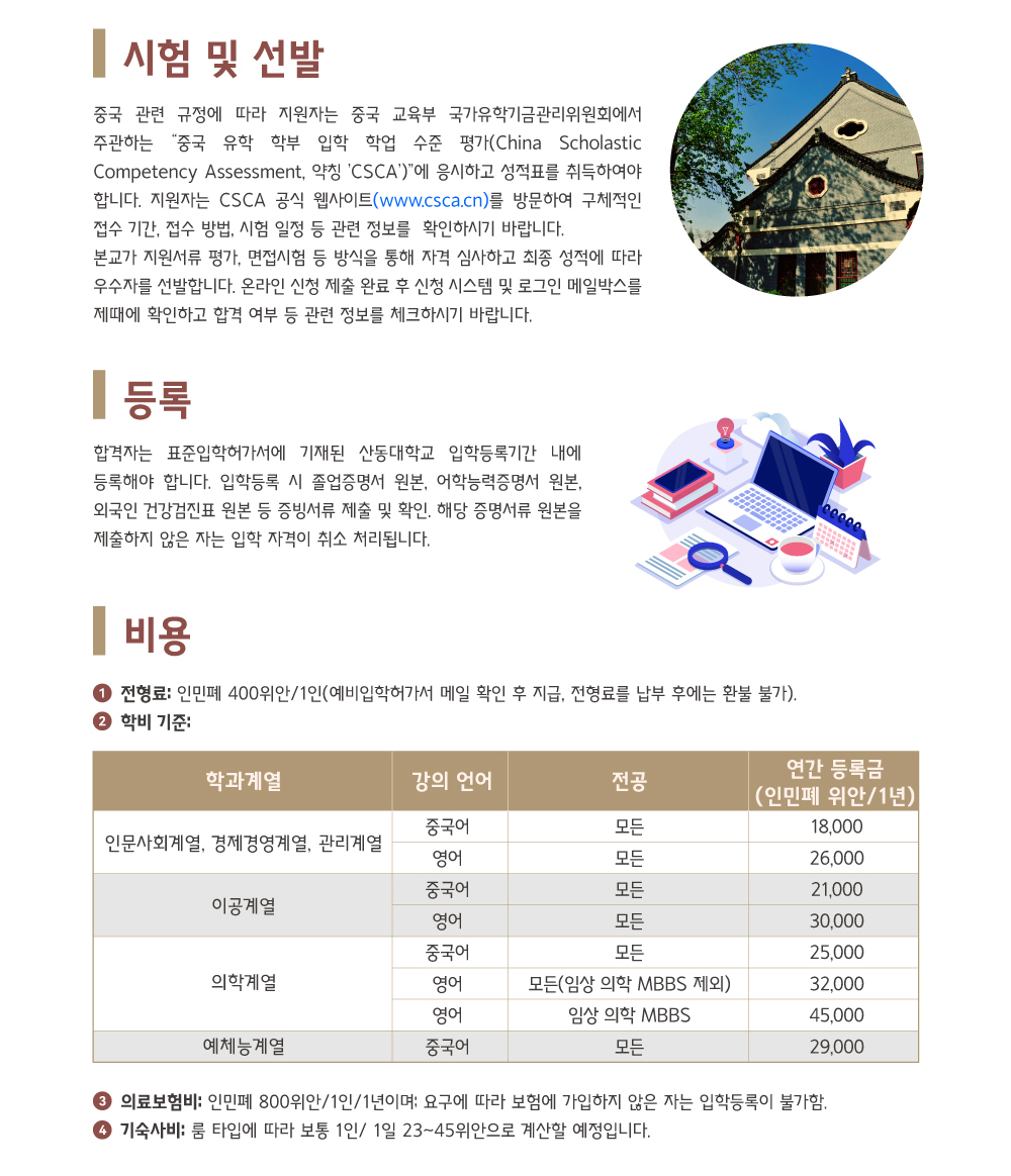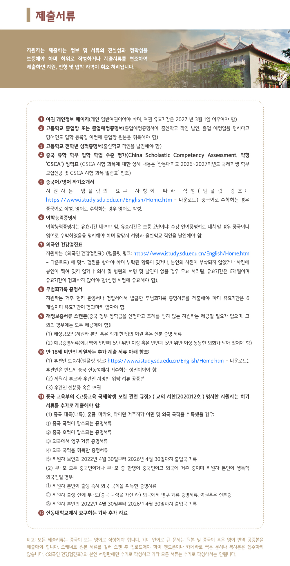 2026년 산동대학교 국제학생(학부) 모집요강