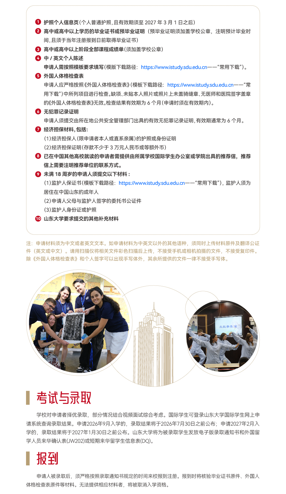 1.山东大学国际学生网上申请系统:http://www.apply.sdu.edu.cn