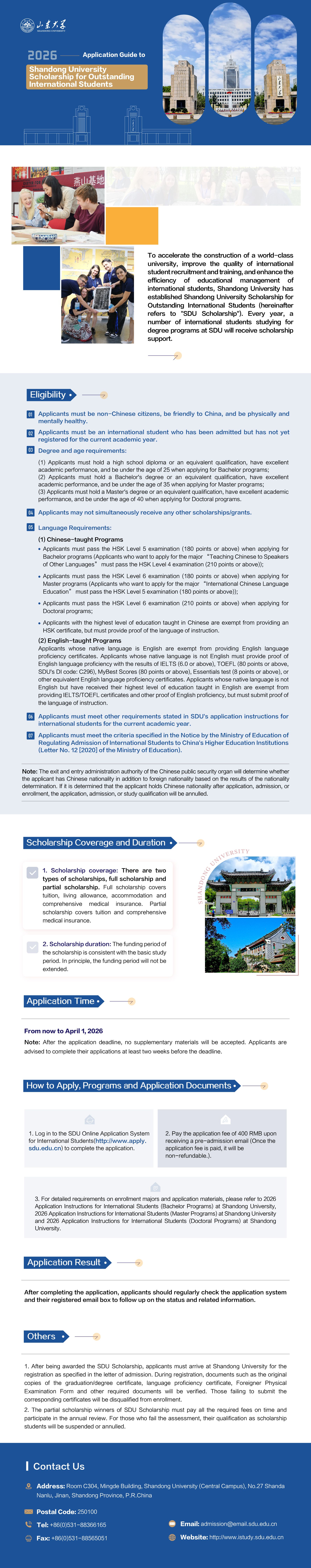 2026 Application Guide to Shandong University Scholarship for Outstanding International Students