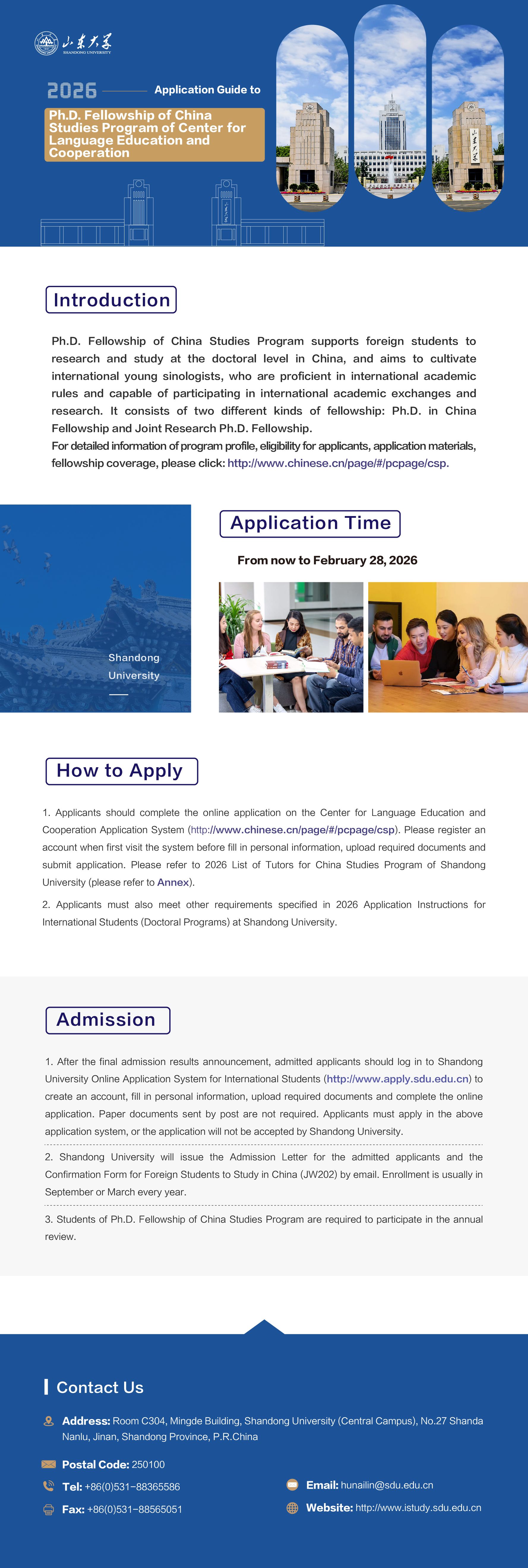 2026 Application Guide to Shandong University Ph.D. Fellowship of China Studies Program of Center for Language Education and Cooperation