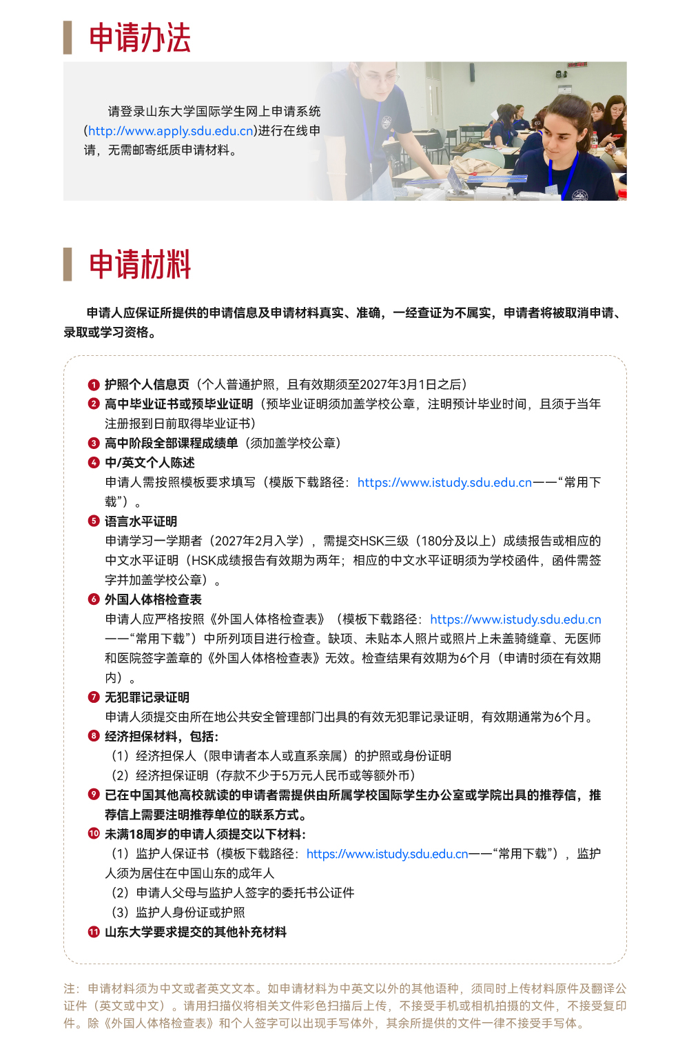 1.山东大学国际学生网上申请系统:http://www.apply.sdu.edu.cn