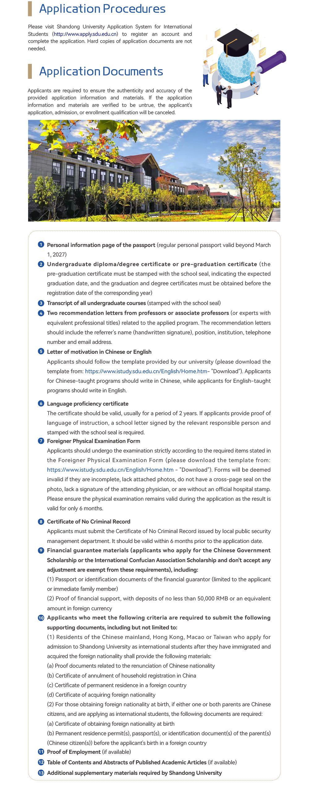 1. Shandong University Application System for International Students: http://www.apply.sdu.edu.cn